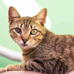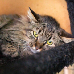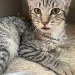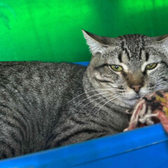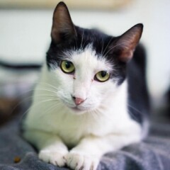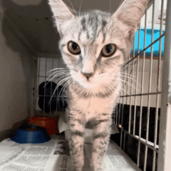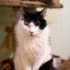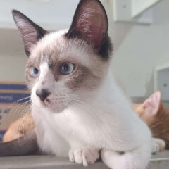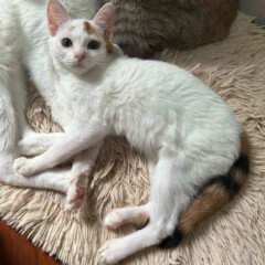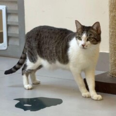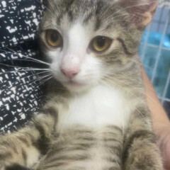 Foi resgatado em Novembro de 2024. Ele é um gatinho meio preguiçoso. Não gosta muito de colo mas é manso.