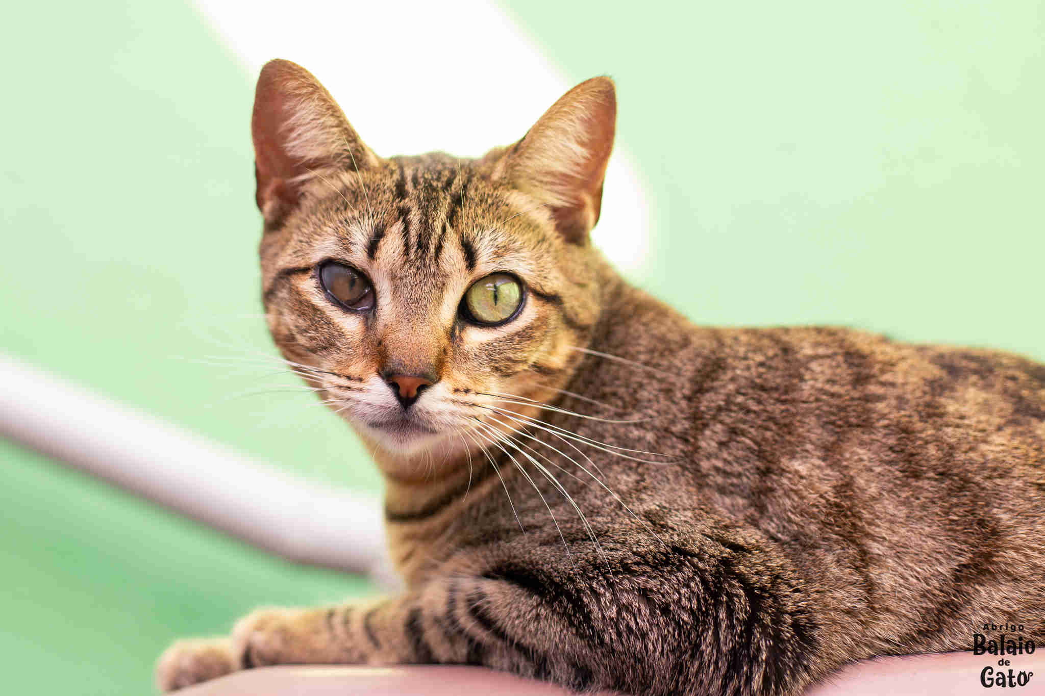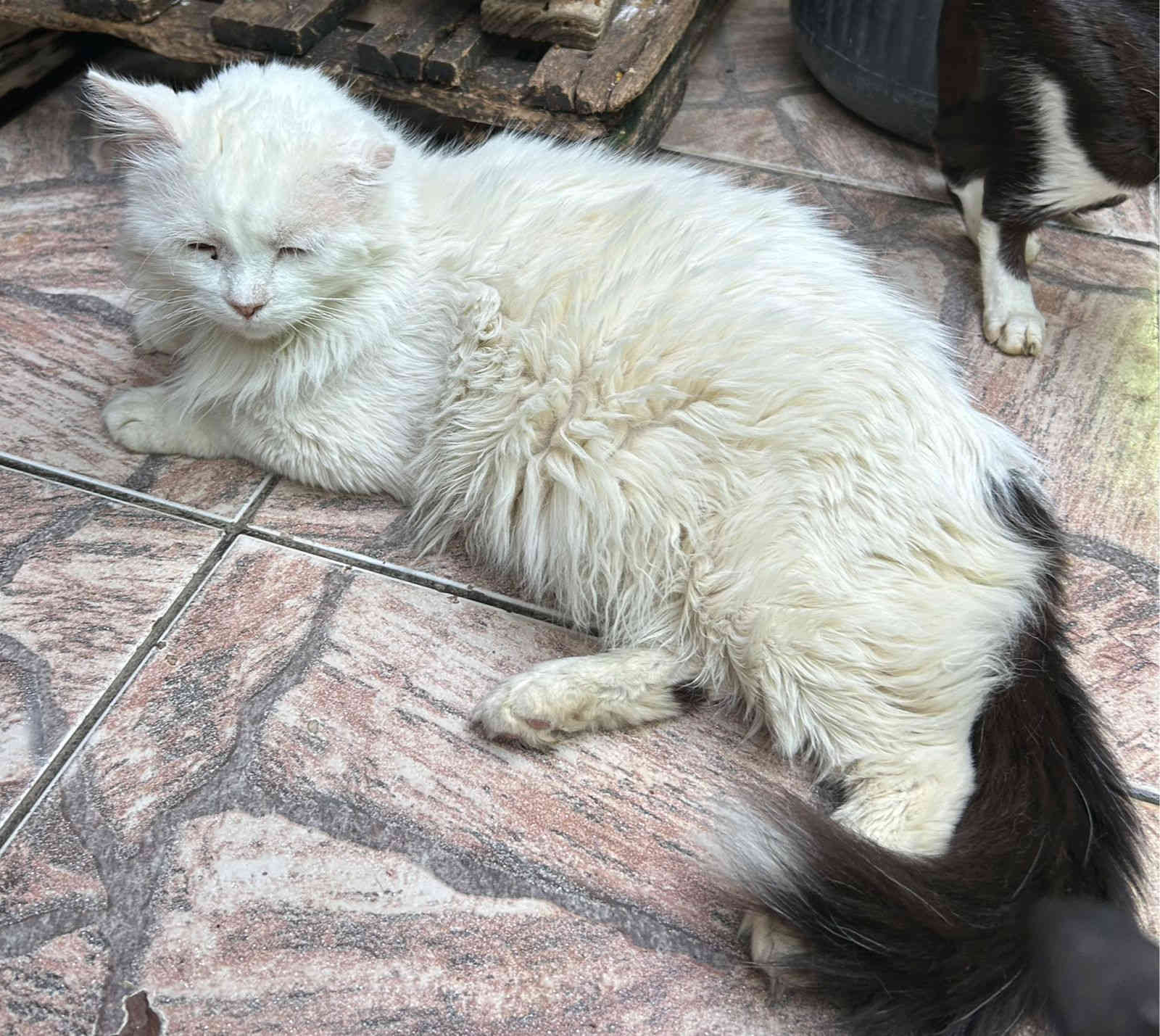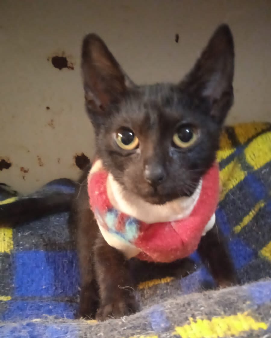 Resgatado das ruas em outubro de 2025. Ficou cego de um olho. Precisa ser amansado.