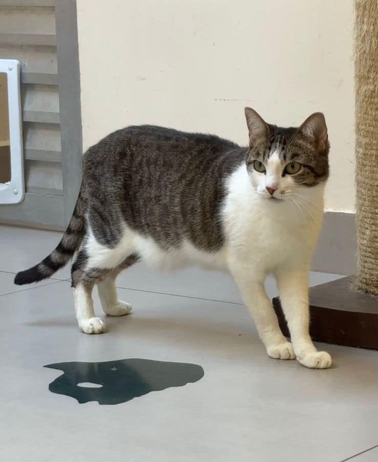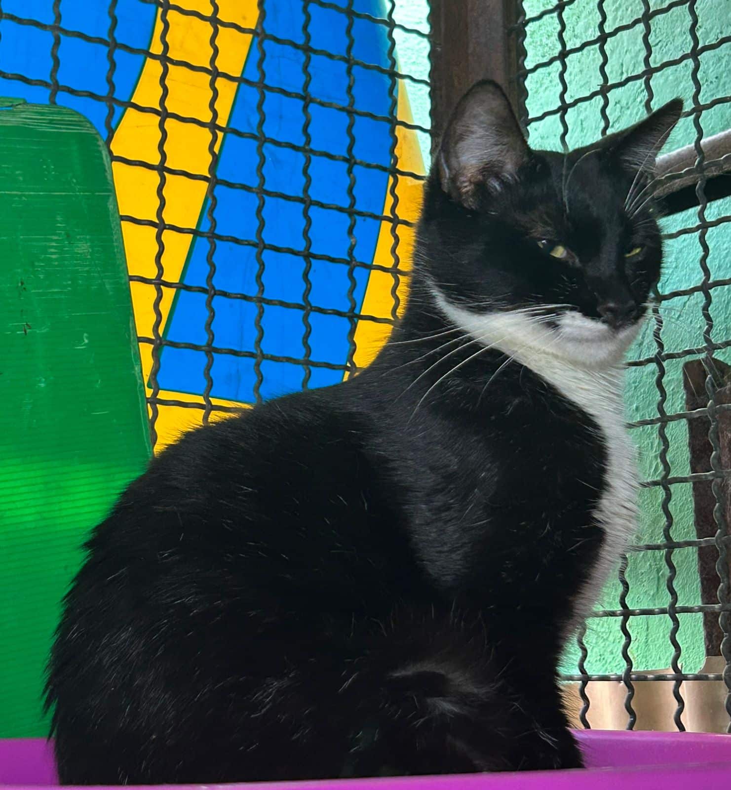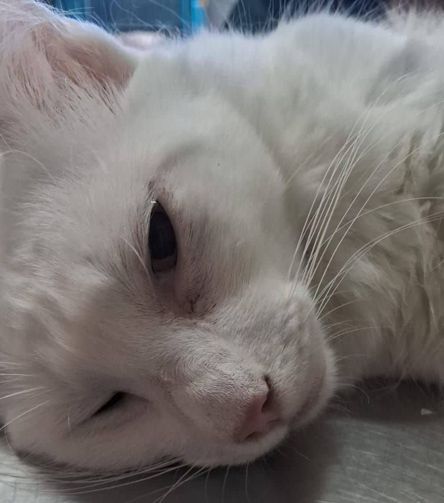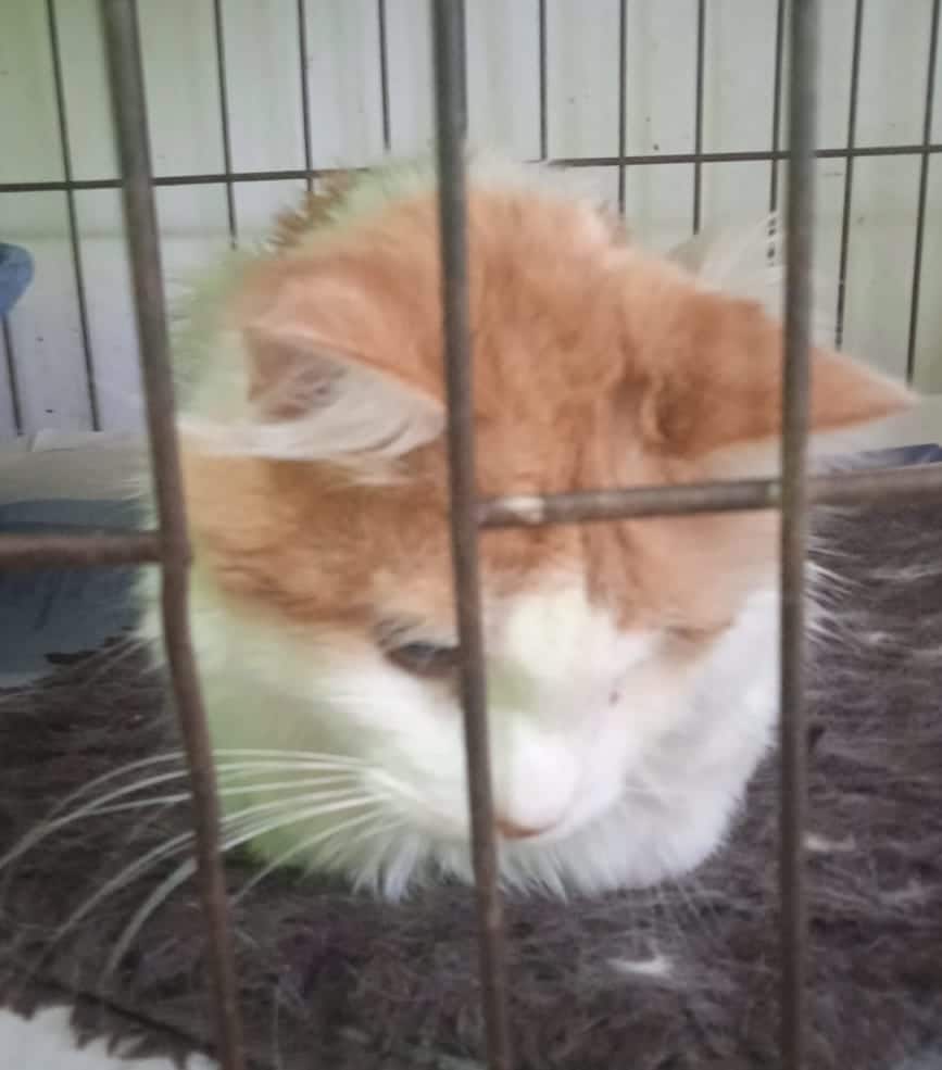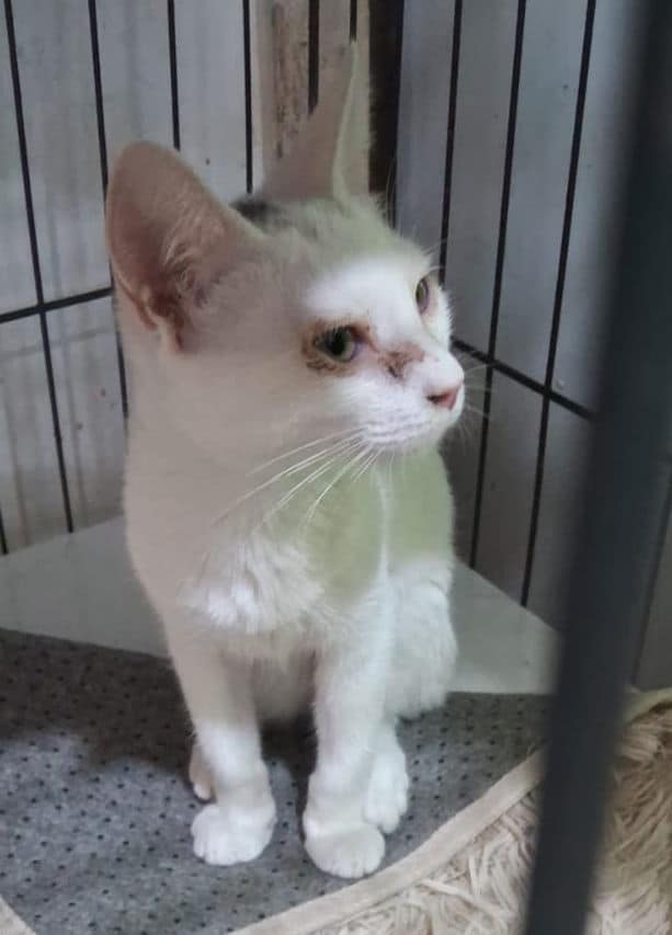 Resgatado em Março de 2022. FeLV positivo, mas está saudável desde o resgate e é muito carinhoso.
