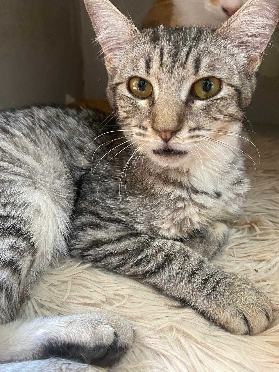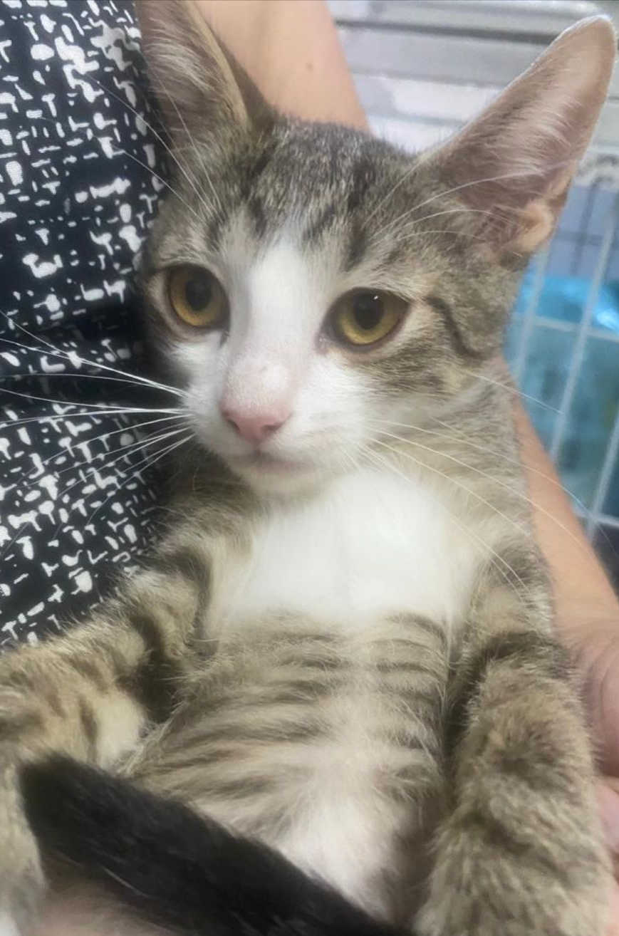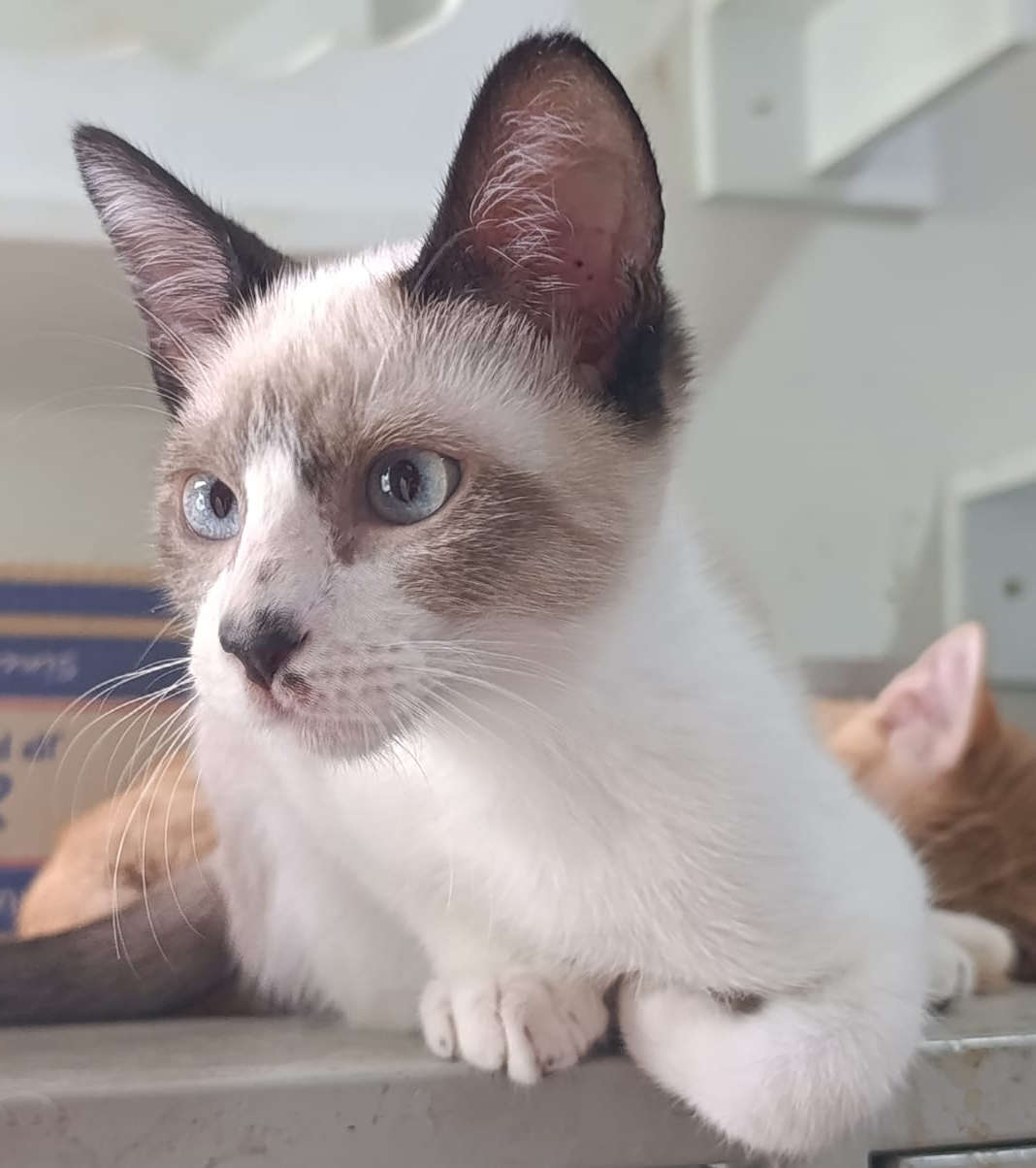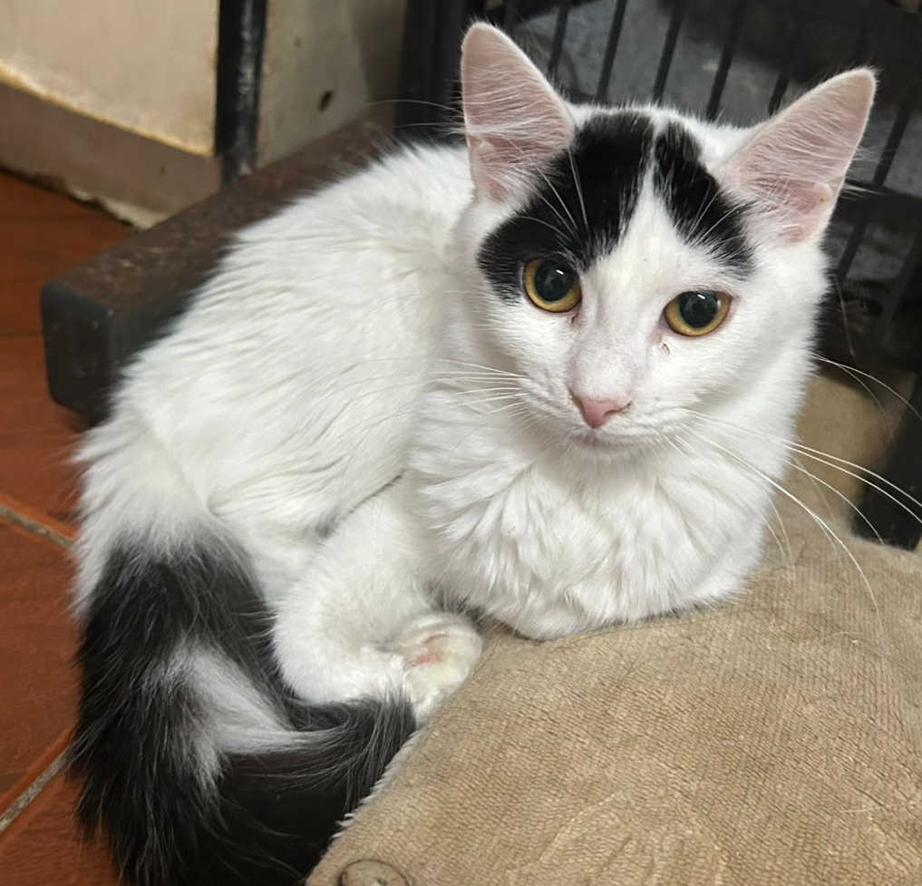 Foi resgatado em Novembro de 2024. Ele é um gatinho meio preguiçoso. Não gosta muito de colo mas é manso.