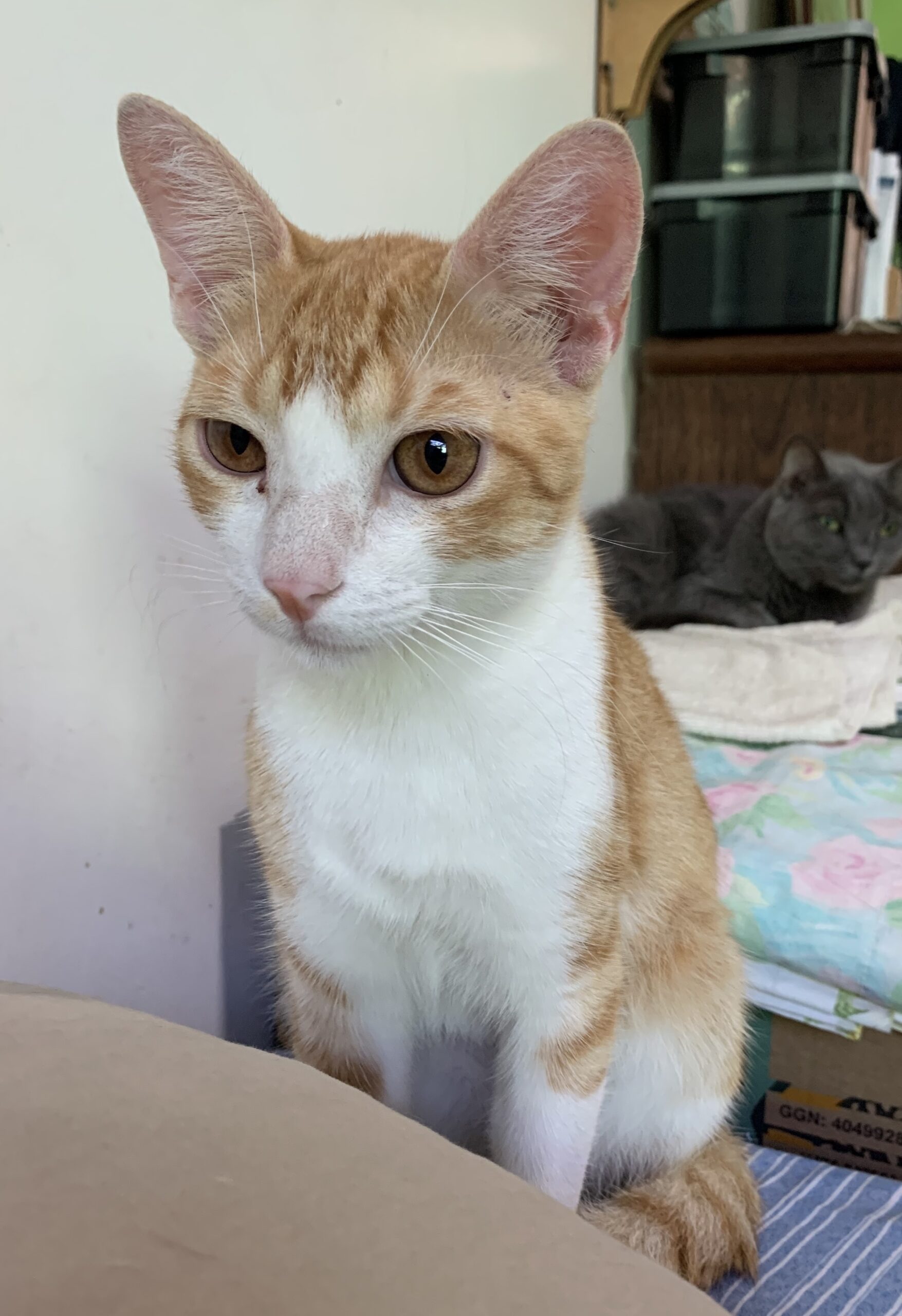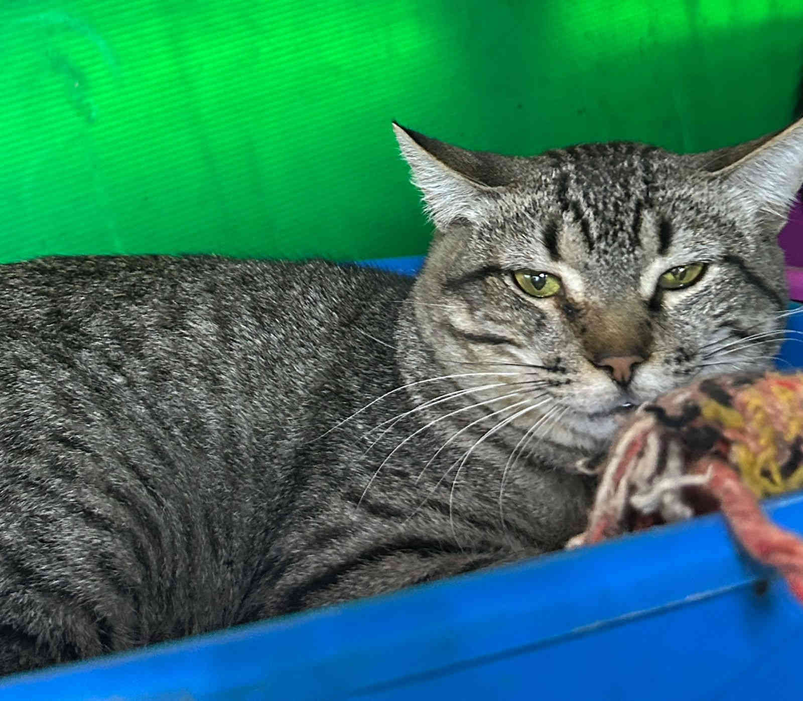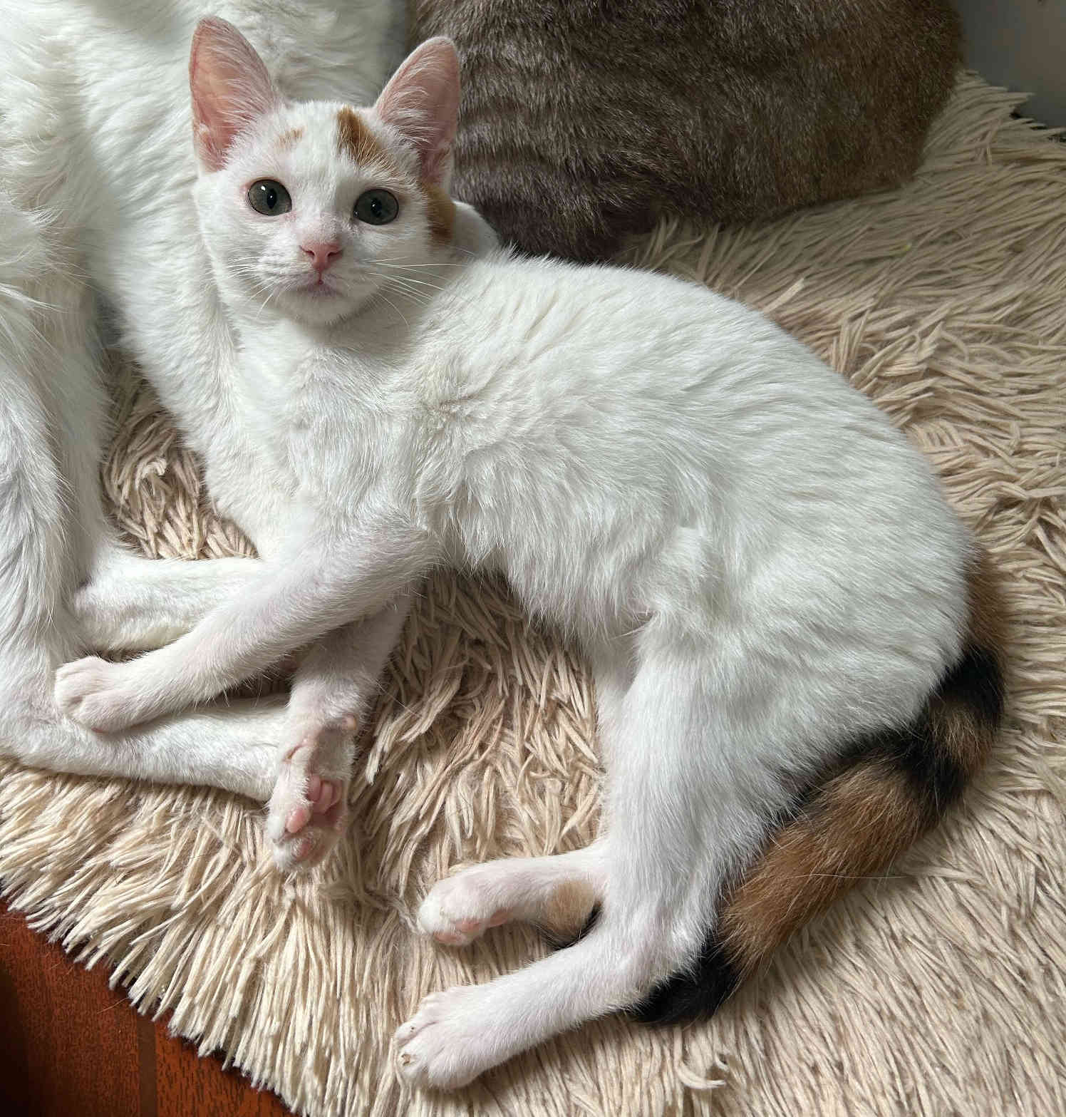 Foi resgatado em Novembro de 2024. Ele é um gatinho meio preguiçoso. Não gosta muito de colo mas é manso.