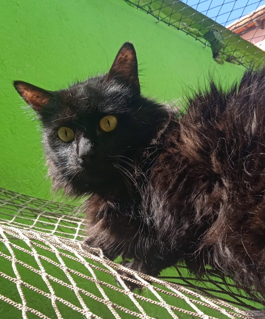 Resgatada em Julho de 2025. Se recuperou de pneumonia, mas é bem medrosa.