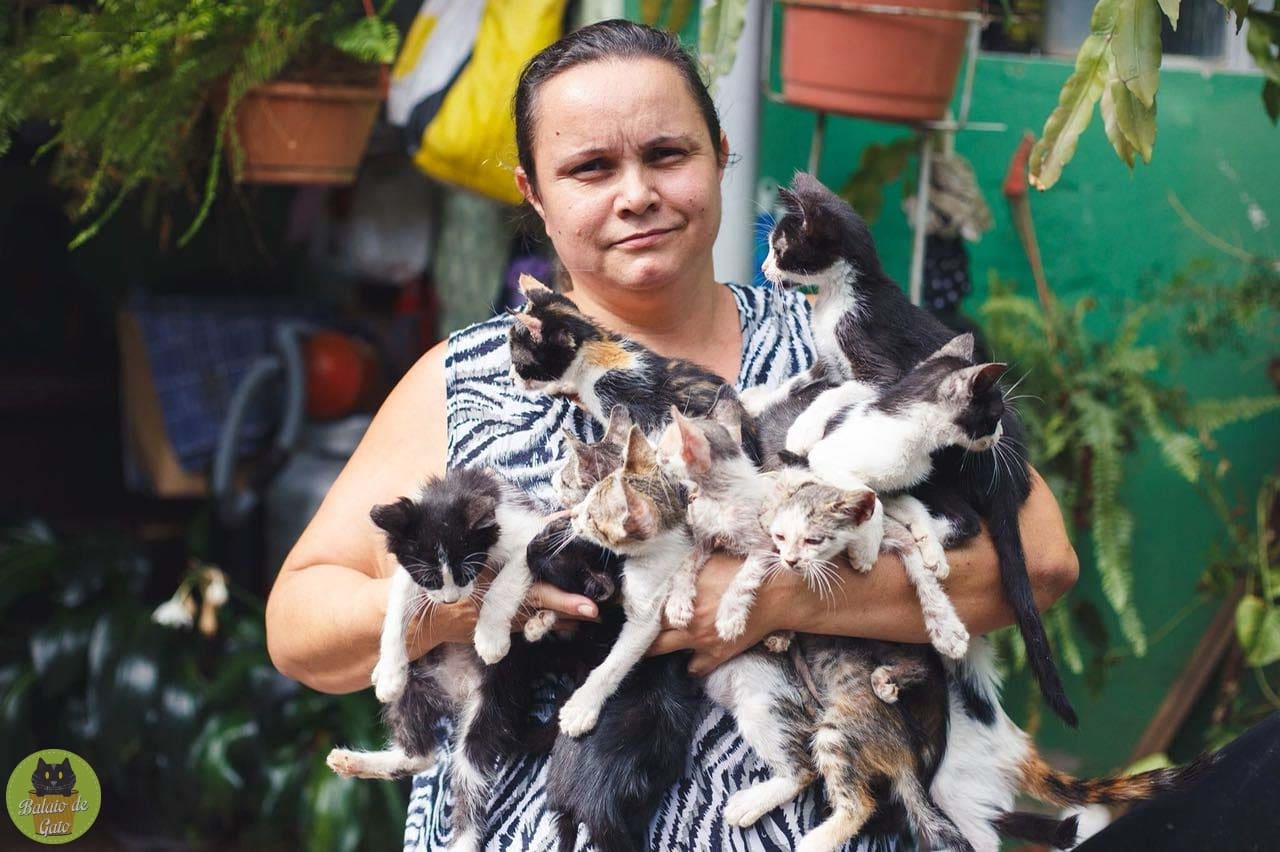 Essa foto da protetora Viviane foi tirada pela fotógrafa Samara Medeiros após todos esses gatinhos serem abandonados dentro de uma caixinha de transporte na porta do abrigo em dezembro de 2017.