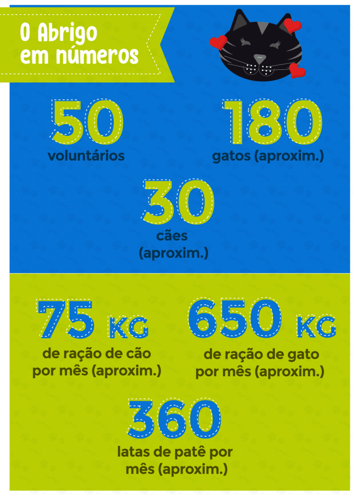 Hoje mantemos aproximadamente 200 animais sob nossa responsabilidade e como não conseguimos resgatar e salvar a todos, trabalhamos também fazendo uma conscientização e orientação da população para que pessoas que encontrem um animal em perigo possam ajudar e também fazer a diferença!